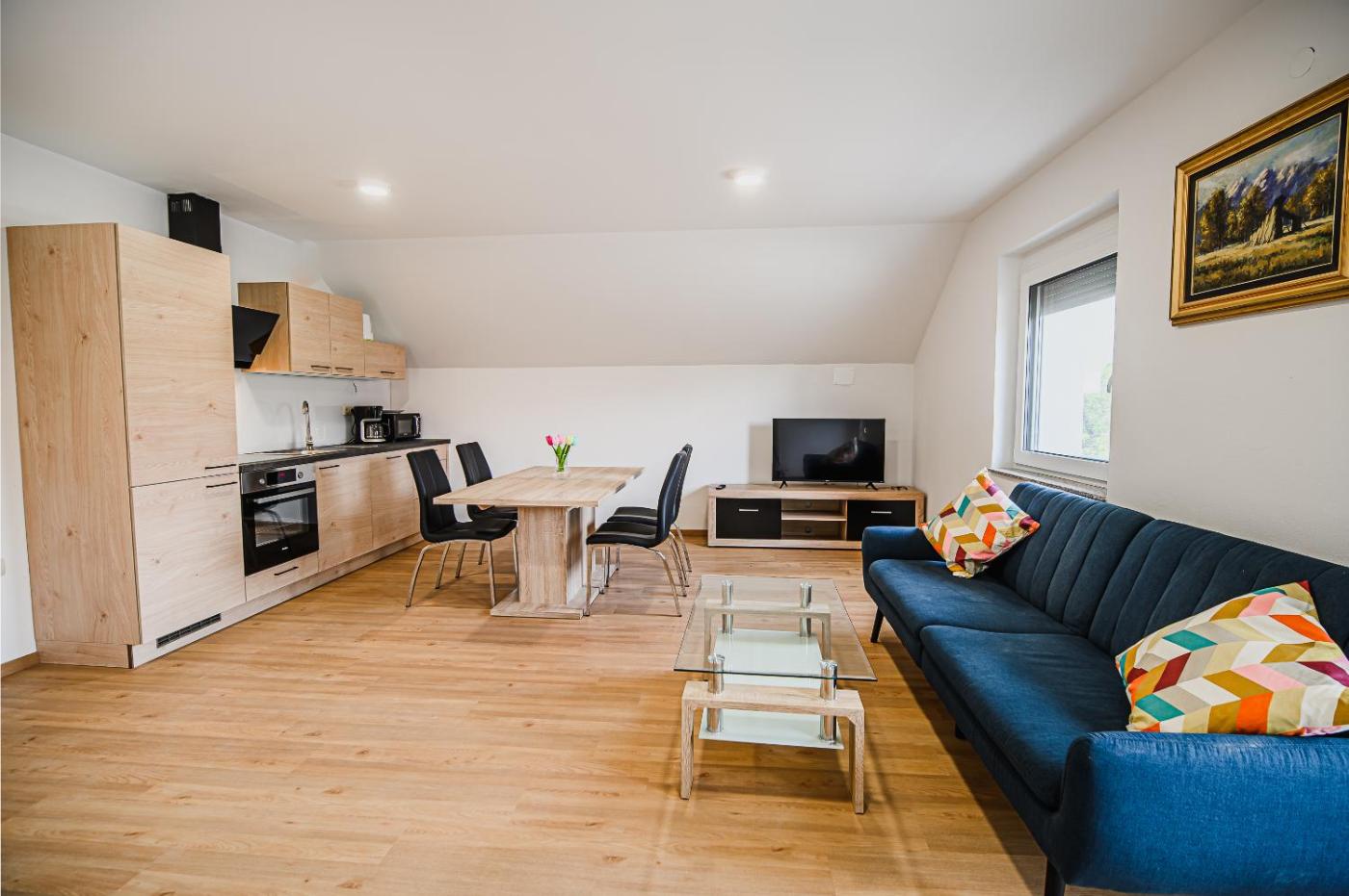 One Bedroom Apartment. Featuring a private entrance, this apartment also comprises 1 bedroom, a seating area and 1 bathroom with a walk-in shower and a hairdryer. Meals can be prepared in the well-fitted kitchen, which comes with a stovetop, a refrigerator, kitchenware and an oven. The apartment provides a flat-screen TV with satellite channels, a washing machine, a tea and coffee maker, a dining area as well as mountain views. The unit offers 3 beds. ;