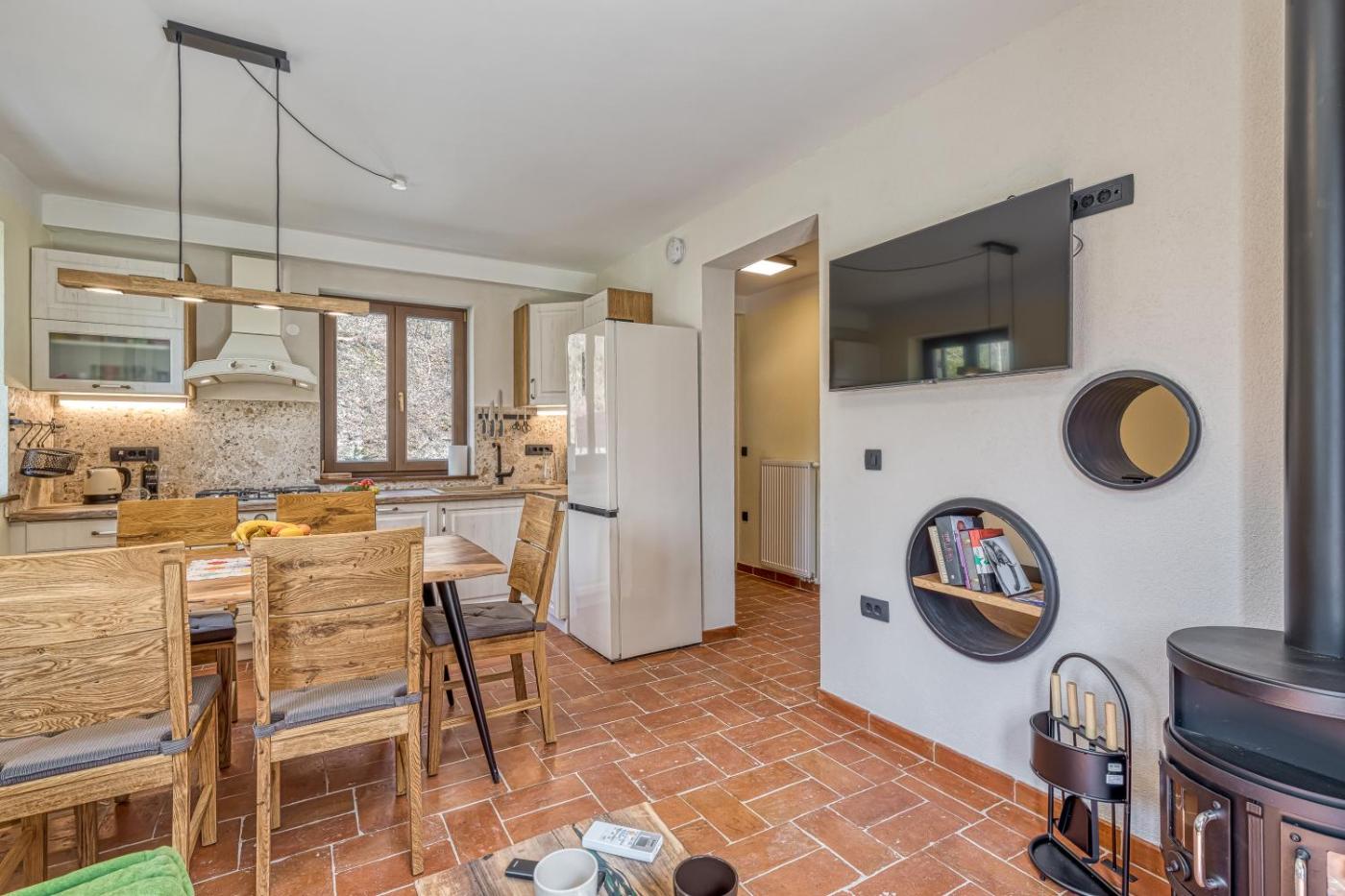 Providing mountain views, Resort Stari Malni, Osilnica - vacation houses Stari Malni is located in Osilnica and provides a wellness area with a sauna and a hot spring bath. This beachfront property offers access to a balcony, free private parking and free WiFi. The holiday home offers river views, a childrens playground and a 24-hour front desk.